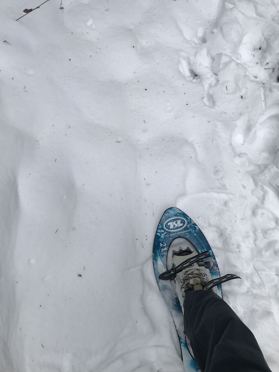 Pour la suite du programme, nous emprunterons plusieurs pistes forestières bien enneigées pour rejoindre la ligne de crête. C’est dans ces passages en forêt que nous rencontrerons une épaisseur de neige plus importante et moins porteuse. Il devient nécessaire de chausser les raquettes à neige pour gagner en confort et faciliter ainsi notre progression.