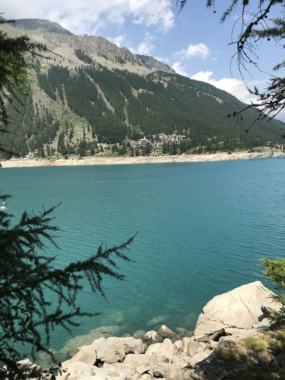 Nous nous accordons une séance de bronzage sur un rocher le long des eaux bleutées du lac. La traversée du barrage est impressionnante. Comment ne pas penser à ces milliers de travailleurs bâtisseurs qui ont sué pour construire cet immense édifice … Les moyens de l’époque n’étaient pas ceux d’aujourd’hui … sacrée prouesse humaine et technique que de dompter les eaux de la montagne.